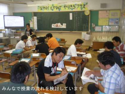 子どもたちが下校したあと,夕方から模擬授業が始まりました。本校では,定期的に各学年の担任が模擬授業をして,授業力・指導力向上をめざしています。