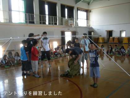 午後から体育館に集まり,長期宿泊学習の事前実習をしました。