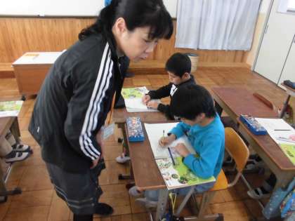 理科の時間に「日なたと日かげ」を学習しています。今日は,地面の様子について学習していました。