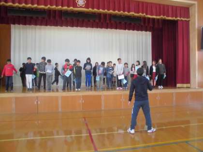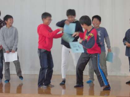 体育館で劇の練習を行いました。今日は立ち位置などを確認しました。