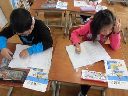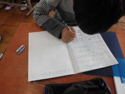 算数の時間に,「かけ算」を学習しています。今日は,練習問題をしていました。