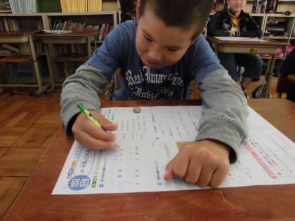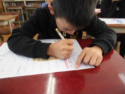 国語の時間に,「大造じいさんとガン」を学習しています。今日は,まとめのテストをしていました。