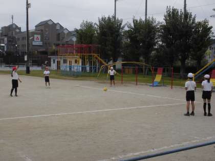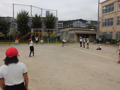 体育の時間に,「キックベース」を学習しています。今日は,ゲームを行っていました。