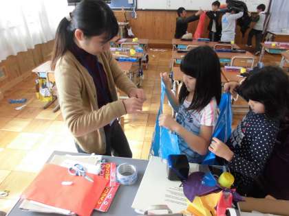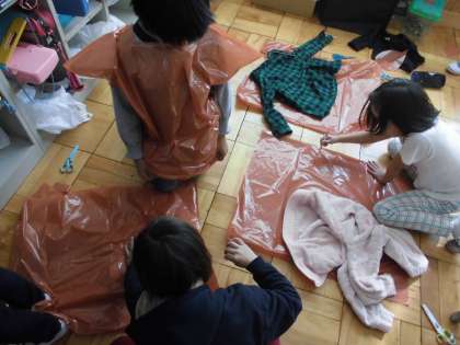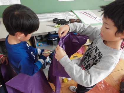 学習発表会で,使用する衣装を作っていました。