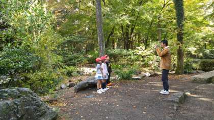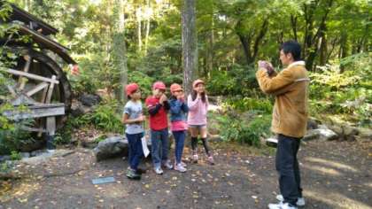 先生がいる水車小屋のポイントは、グループ写真のポイントです。今のところたどり着いているグループは4グループです!