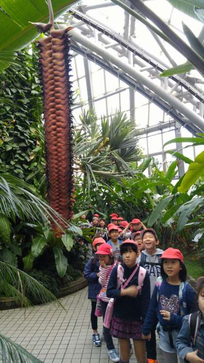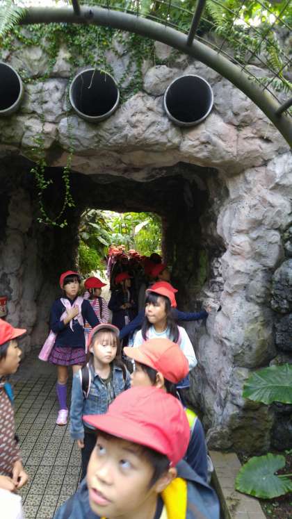 お昼ご飯も食べ終わって、温室の植物を見ています。見たことのない植物がいっぱい!