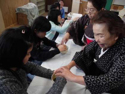 ふれあいサロンで女性会のみなさま主催のお茶会が,4年生から6年生までの希望者で行われました。初めて作法を知る子どもたちがたくさんでしたが,お茶をよばれたり,お菓子をいただいたりして,とても貴重な体験となりました。