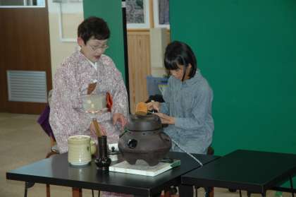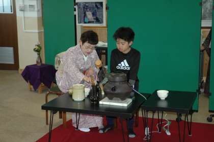 お茶をいただきた後,一人ずつお茶のたて方を教えていただきました。