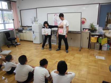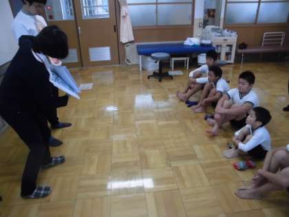 今日は,身体計測の日です。身体計測の前に,排泄の仕組みについて学習していました。