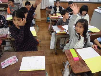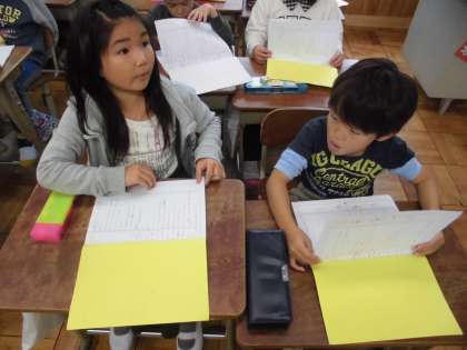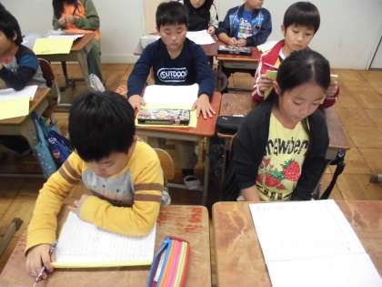 5校時に,学習発表会の台詞やタイミングを確認していました。