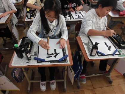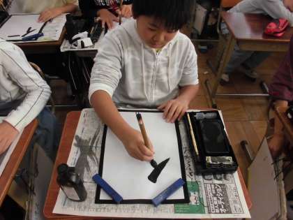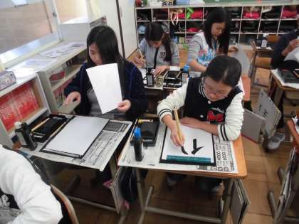 書写の時間に,「伝統」の字を練習していました。