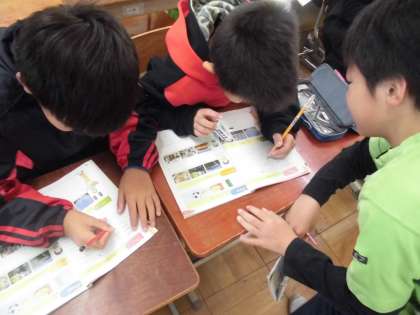 外国語活動の時間に,友だちに「どの国に行きたいですか?」と英語で聞いていました。