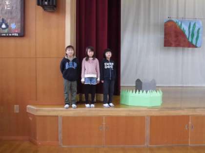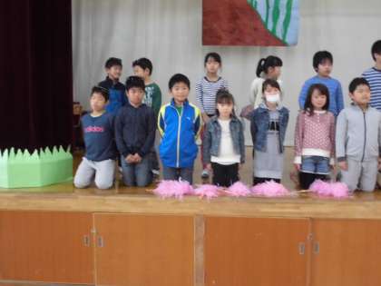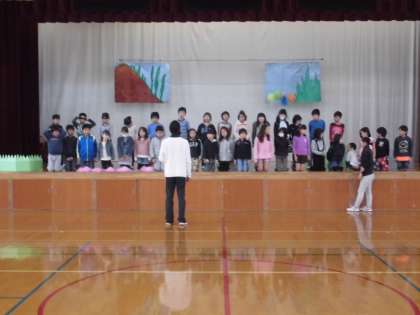 学習発表会の練習を体育館で行っていました。本番通りに,練習していました。