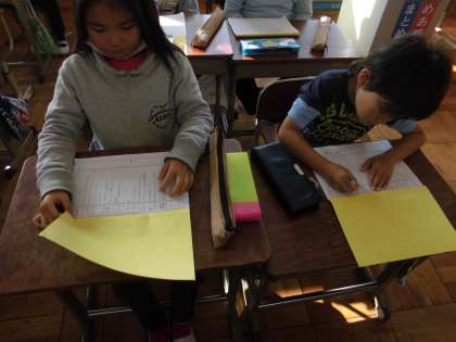 学習発表会に向けて,台詞の確認をしていました。