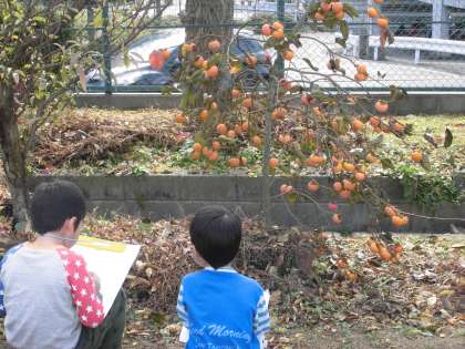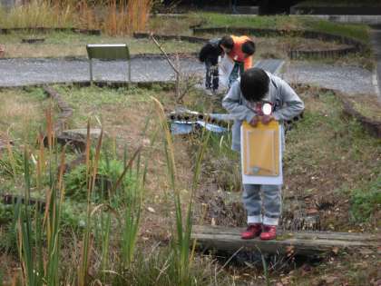 国語の時間に,「しらせたいなみせたいな」を学習しています。今日は,知らせたいものや見せたいものを見つけにいきました。