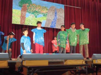 高学年と3くみのリハーサルの様子です。声がしっかり出てくるようになりました!大道具のこだわりにもご注目!お楽しみに!
