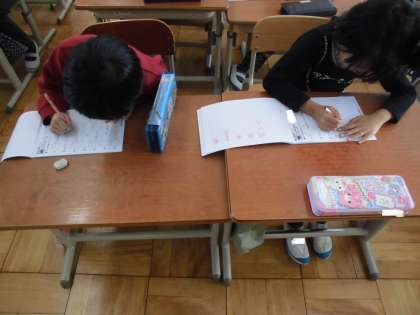 国語の時間に,漢字練習をしていました。