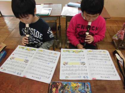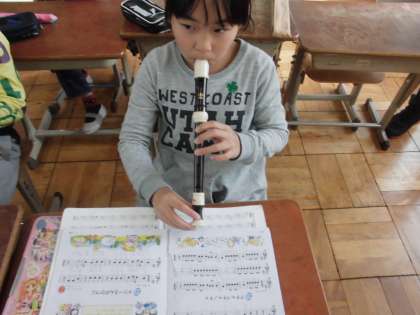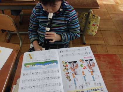 音楽の時間にリコーダー練習をしていました>