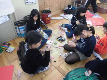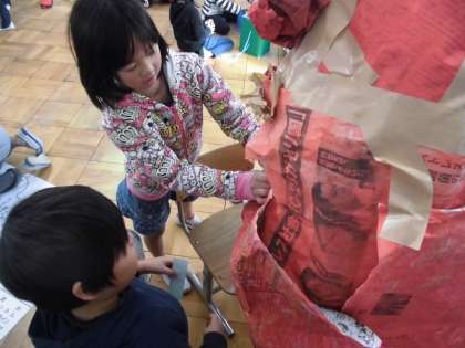 明日の学習発表会に使用する,大道具を作っていました。
