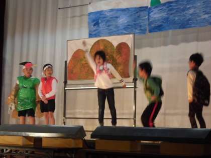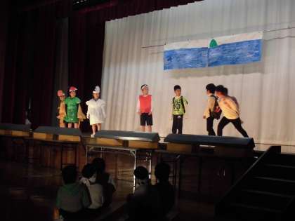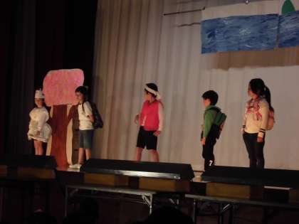 1年生の「レッツゴー!!おにがしま」です。一人ひとり一生懸命に演じていました。