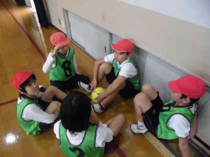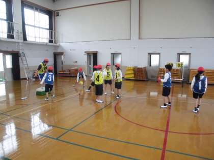 体育の時間に,「ポートボール」を学習しています。今日は,効率よく得点できる作戦を意識しながらゲームをしていました。