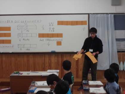 算数の時間に,「分数」を学習しています。今日は,分数の表し方について学習していました。