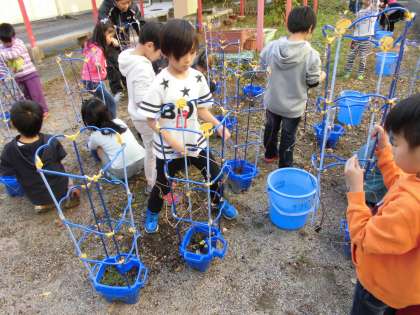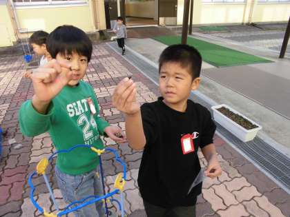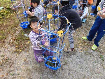 生活科の時間に育てた「あさがお」のたねを収穫していました。