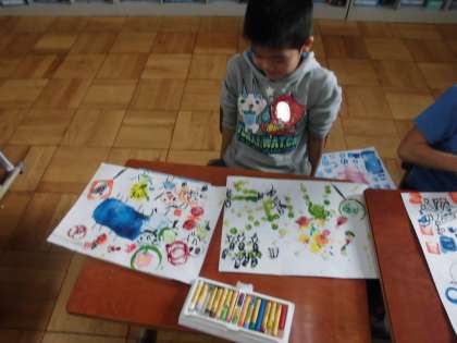 図画工作の時間に,「うつしたかたちから」を学習しています。