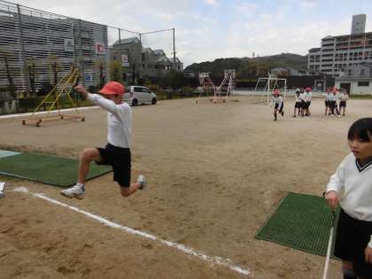 体育の時間に,「走り幅跳び」を学習しています。