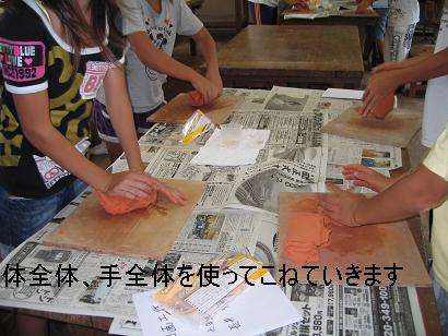 粘土板に向かって、体全体を使って力いっぱい粘土をこねていました。