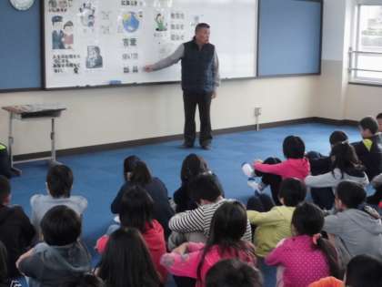4年生合同で,情報モラル教育が行われました。山科警察の方にネット社会の危険性についてお話をしていただきました。