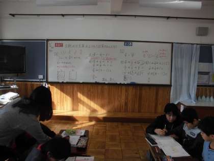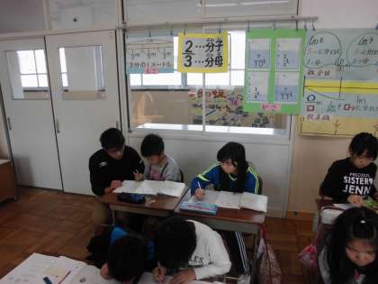 算数の時間に,「分数」を学習しています。今日は,分数のひき算の仕方を学習していました。
