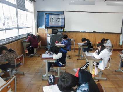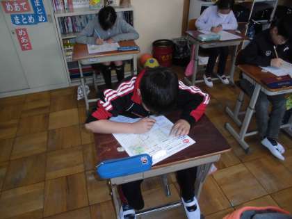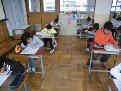 社会の時間に,「琵琶湖疏水」について学習しています。今日は,まとめのテストをしていました。