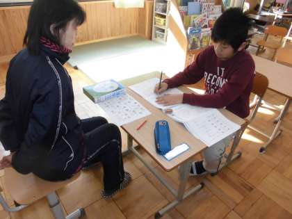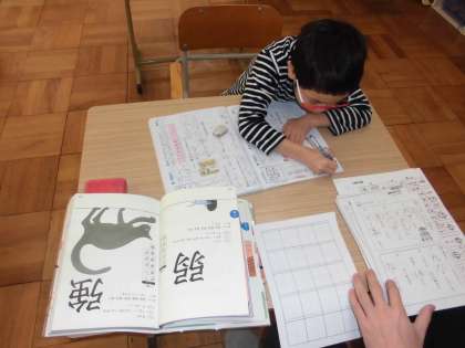 国語の時間に,漢字練習をしていました。漢字を丁寧に書いていました。