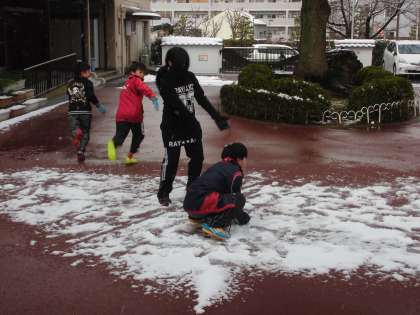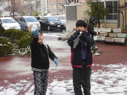 寒さに負けず,楽しそうに雪合戦をしています。