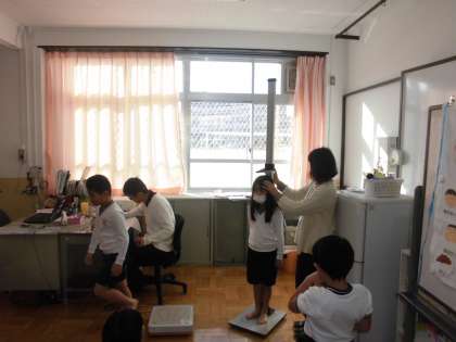 今日は,身体計測の日です。上手に計測を行うことができました。