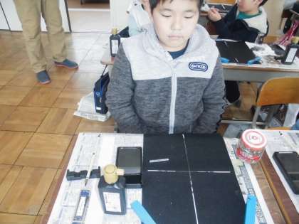 書写の時間に,自分の名前を練習していました。