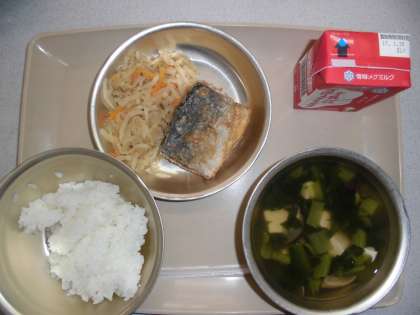 今日の給食の献立は,「ご飯」「すまし汁」「牛乳」「さわらの竜田揚げ」「紅白なます」です。