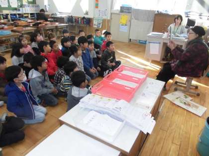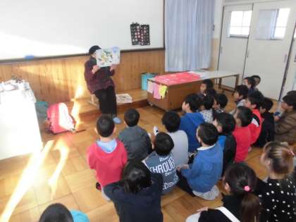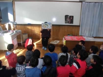 朝の会で,紙芝居の読み聞かせをしていただきました。