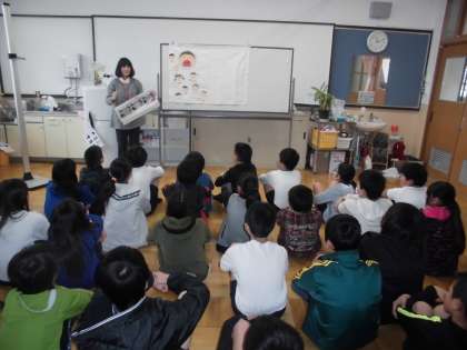 身体計測の前に,風邪やインフルエンザの予防についての学習をしていました。
