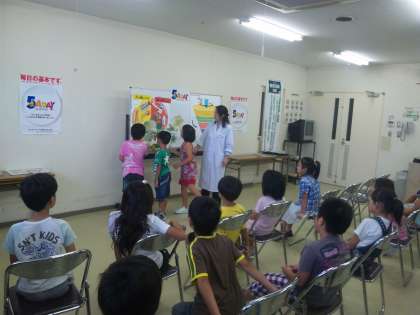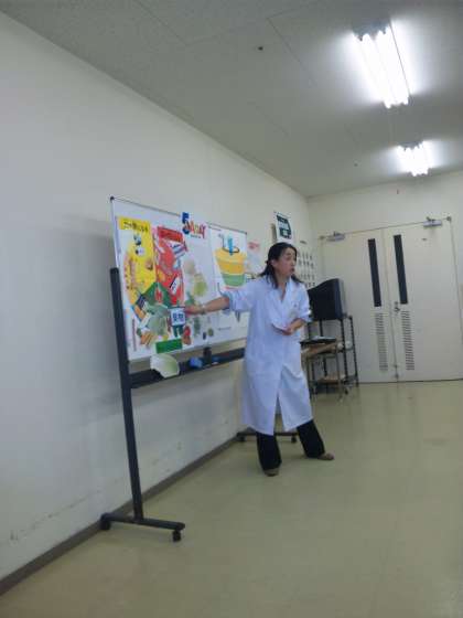 食育インストラクターさんによる食べ物の栄養価や食べ方のバランスのお話を聞きました。クイズ形式の内容で,とても分かりやすかったです。