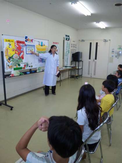 会議室にもどって,実際に買った野菜などをもとに,体に必要な栄養素のある野菜が買えているかどうかを確かめました。子どもたちにとっては,めったにできない体験ができたと思います。