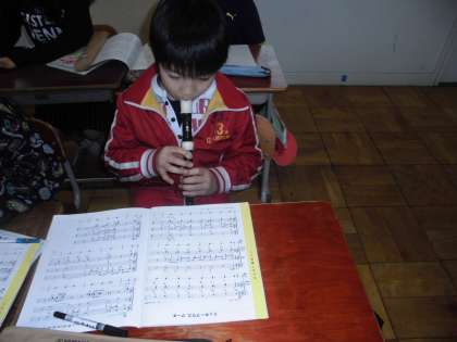 6年生を送る会に向けて。話し合ったり,リコーダー練習をしたりしていました。