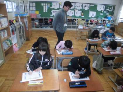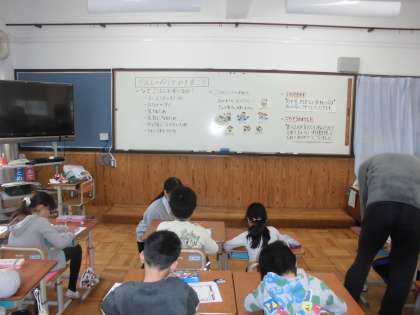 食育の時間に,「いただきます」「ごちそうさま」等の言葉について学習した後感謝の手紙を書いていました。
