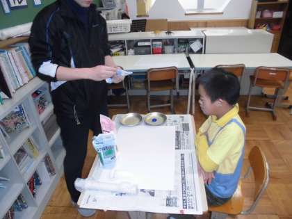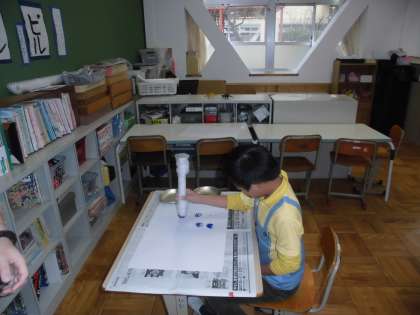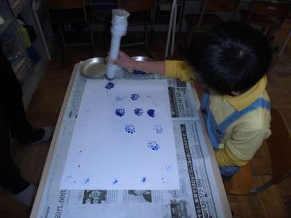 図画工作の時間に,いろいろなスタンプを使って作品作りをしていました。