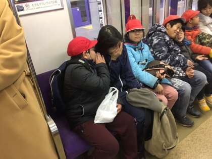 地下鉄で、学校まで戻ります。少し疲れも見えますが、とても楽しく過ごしました。