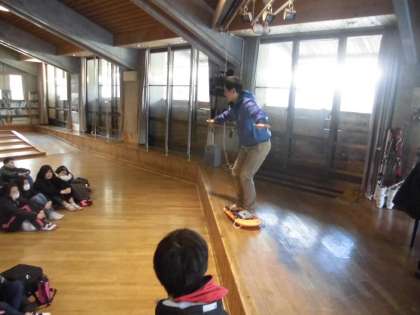 続いて山の家の職員さんより、「そり」の使い方などを教えていただきました。