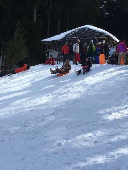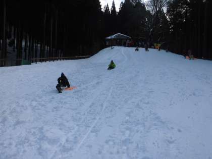 子どもも大人もそりを満喫しています。