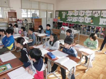 国語の時間に,「おにごっこ」を学習しています。今日は,「おわり」にどんなことが書かれているか学習していました。