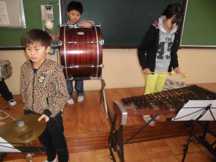 音楽の時間に,「茶色の小びん」を学習しています。今日は,合奏の練習をしていました。